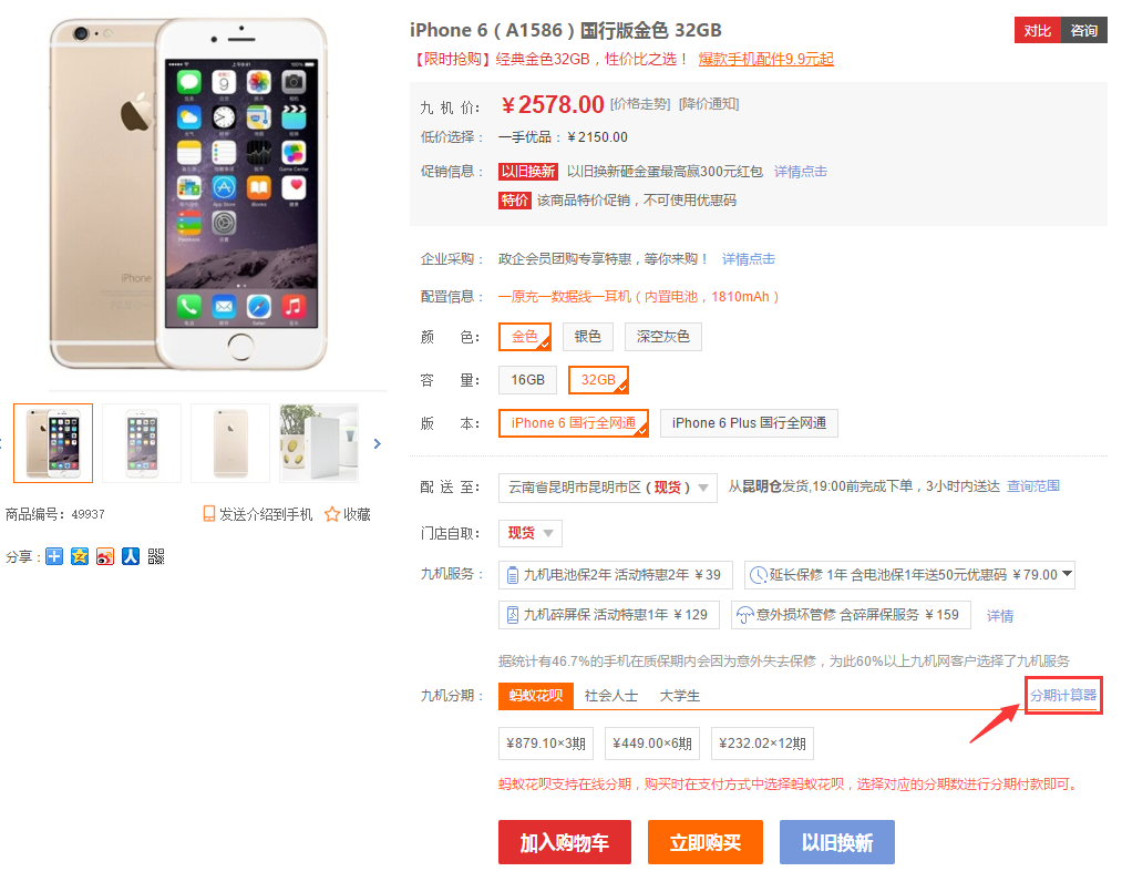 注:点击左下角“附近门店查询”,即可获取门店信息。昆明市区的所有九机网门店均可办理。