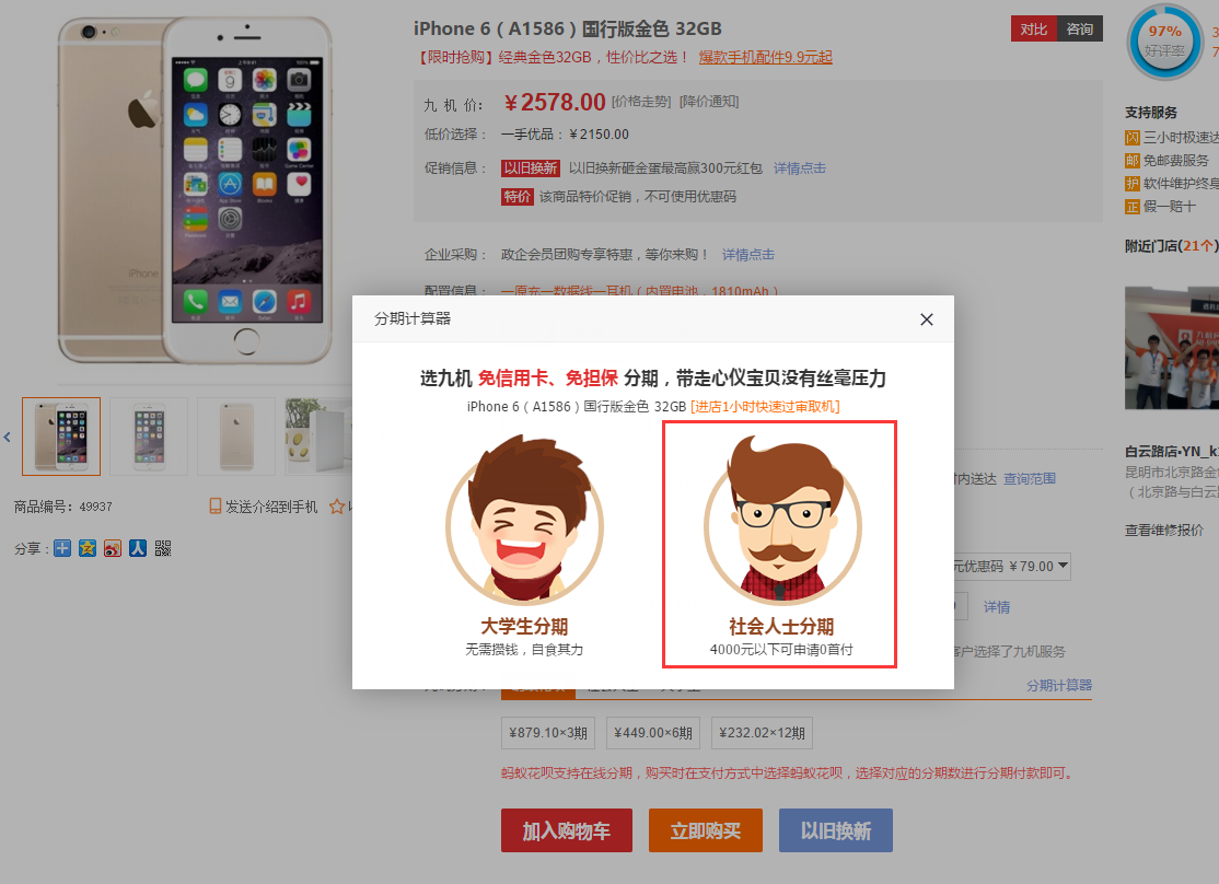 2门店申请分期1小时即可取货,4000元以下可申请0首付。