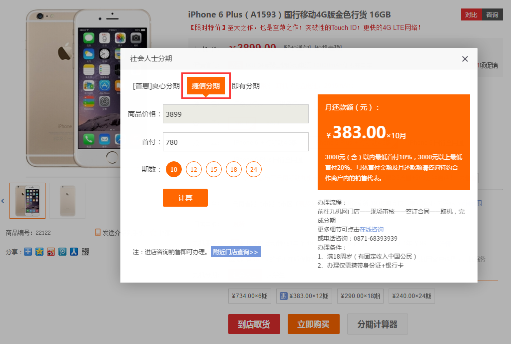 分期产品:捷信分期产品所涵盖的范围很广,包括手机、电脑等,均可在九机网门店办理分期;