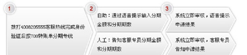 2. 通过95588申请分期付款业务,应在该笔消费交易入账次日至该笔消费到期还款日前三个工作日之间提出。