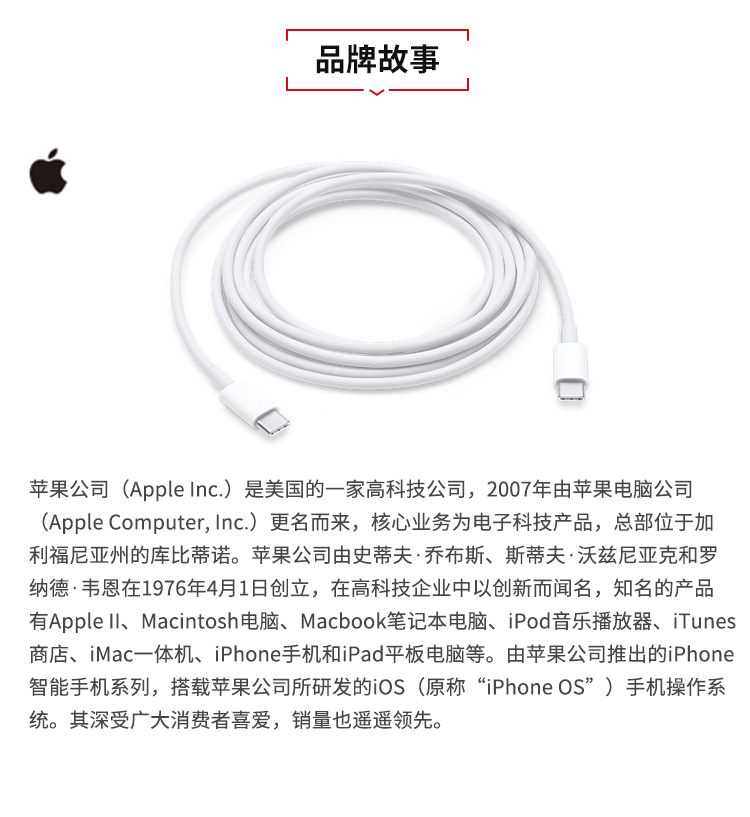 苹果 原装 120W USB-C转USB-C 手机/平板/笔记本电脑数据线