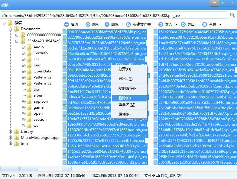 再次强调一遍:不要自作聪明和嫌麻烦直接删除Usr文件夹,删了以后会导致聊天记录等需要保留的缓存异常,从而丢失或报错,一定要进入到Usr文件夹内去全选删除里面的零碎文件!此方法包括适用到以下几个步骤的操作,请谨慎!