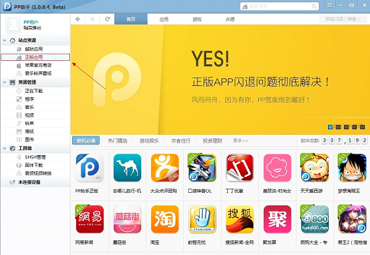连接您的苹果设备,打开PP助手,点击正版应用,即可下载您想要的应用软件