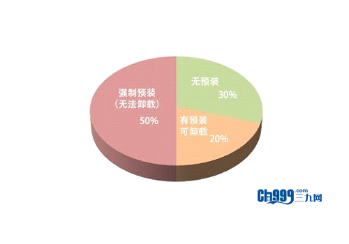 无法预装软件的分别是苹果设备(iPhone、iPad、iPod touch),魅族(MX)和小米手机(非电信版)。预装软件但是用户有权限卸载的品牌有联想(乐Phone S2)、酷派(9900)。而属于“强制预装”情况的品牌占据了半数,分别是HTC、三星、LG、华为、中兴。在以上机型中,预装软件少则几个,多则一二十个,能够主动删除的占很少一部分。