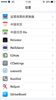 OneByOne Contacts:滑动删除通讯录成员,系统原生默认是进到联系人,然后点击右上角,然后选最下“删除联系人”;该插件可以直接滑动联系人删除对应人员,如果不是经常操作,不推荐安装,以免勿删联系人HiddenSettings7:显示iOS7隐藏的设置选项,安装之后会在控制中心增加一栏“SpringBoard Settings”