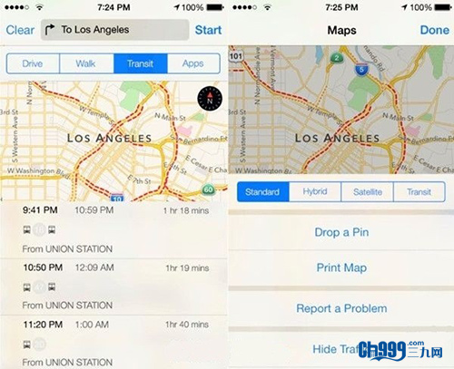 公共交通导航将同时支持在传统导航面板和独立模式下查看。在传统导航方式下,用户可以同时查看走路、驾车和公交路线,而对立模式则会更清楚的显示车站、机场和公交站。虽然苹果推出了自家的公共交通导航功能,但还会允许App Store中的其他应用提供相似的功能。