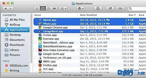 苹果早已经宣布 GarageBand、iMovie 和 iPhoto 免费,这虽然是一件大好事,但仔细一想也并非所有人都会去用它们的吧,而这三个应用所占用的空间可不小。如果你确实没有这个需求,最近又觉得硬盘有些不够用,那么就删掉它们吧。