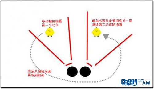 4. 让对象赶紧跑出画面,从你背后绕着跑到镜头前面,但是不要入画。