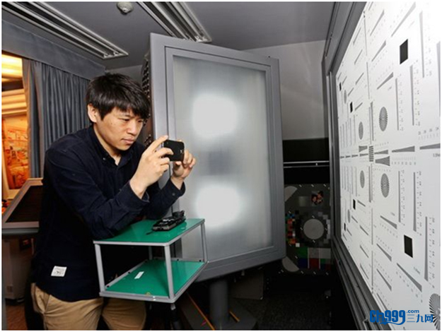 三星在一个很大的泡沫制成的房间里,测试手机信号,该泡沫材料能吸收电磁波,房间模仿没有围墙的开阔环境。