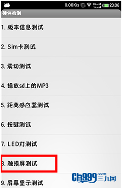 触屏校准:在触屏测试状态下面点击右下菜单键你就会看到触屏校准,点击进去就可以对触屏进行校准。