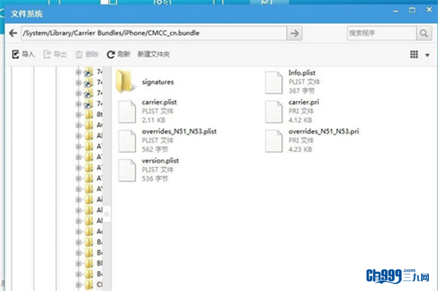 第二步:进入system/library/Carrier Bundles/Iphone目录下,删除在手机内Cmcc_cn.bundle中的所有子文件(建议为了安全起见,可以备份一下里面的文件,再删除)