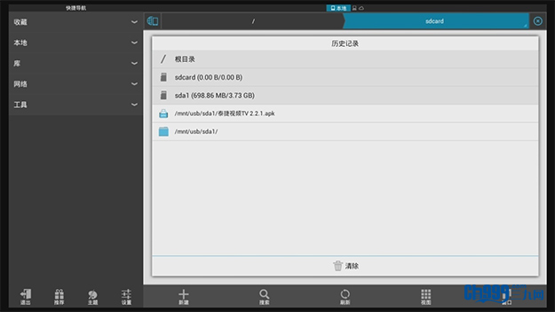 2、进入文件浏览器,切换至sdcard界面;