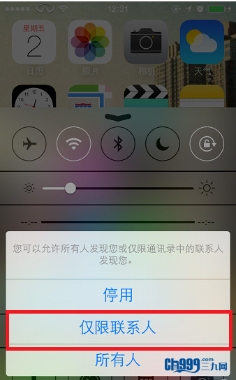 -在调出的页面中选择“仅限联系人”,这样你就成功限制仅允许通讯录中的联系人发现你