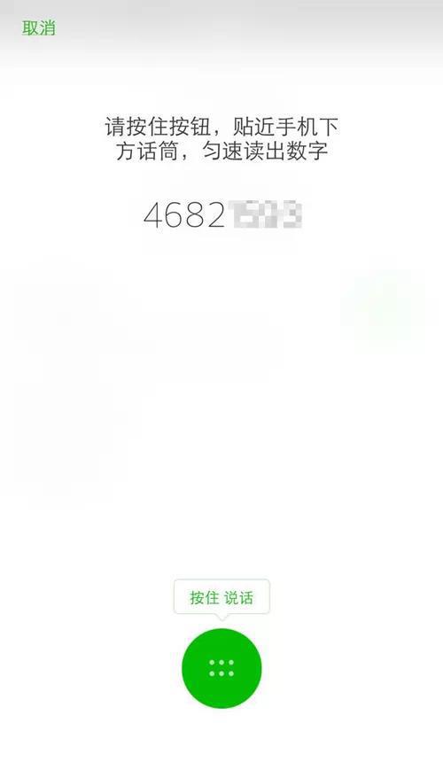 4.屏幕上会出现8个数字,按要求按住按钮,贴近手机下方话筒,匀速读出数字