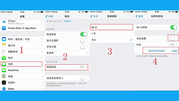 打开”设置-通用-时间与日期”把时间调到一个月以后的日期,比如今天是6月15日,可以设置为8月15日, 然后在 设置 信息 信息保留时间里面选择 30天 这样会删除那条导致闪退的信息”再次回到短信就正常了(注意此操作会删掉所有短信内容)。