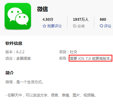 1、目前App Store内大部分的软件安装要求系统是iOS7或者iOS8以上,所以降级到iOS6以后可能连基本的软件用不了,就拿最基本的微信来说安装要求也要至少iOS7以上的系统。