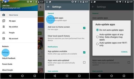 你肯定不希望自己宝贵的流量被用在应用更新上面,特别是对于那些大型应用来说。因此,你可以进入运用商店,在设置菜单当中选择“不要自动升级应用”或是“仅通过Wi-Fi自动升级应用”。