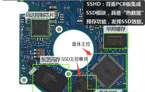 混合硬盘是一块基于传统机械硬盘诞生出来的新硬盘,除了机械硬盘必备的碟片、马达、磁头等等,还内置了NAND闪存颗粒,这颗颗粒将用户经常访问的数据进行储存,可以达到如SSD(就是固态硬盘)效果的读取性能 。固态混合硬盘(SSHD: Solid State Hybrid Drive)是把磁性硬盘和闪存集成到一起的一种硬盘。原理和微软Windows 7和Windows 8操作系统上的“Ready Boost”功能相似,两者都是通过增加高速闪存来进行资料预读取(Prefetch),以减少从硬盘读取资料的次数,从而提高性能。不同的是;混合硬盘将闪存模块直接整合到硬盘上,对比一下,就会发现新一代的混合硬盘不仅能提供更佳的性能,还可减少硬盘的读写次数,从而使硬盘耗电量降低,特别是使笔记本电脑的电池续航能力提高; 由于一般混合硬盘仅内置8GB的MLC闪存,因此成本不会大幅提高。同时混合硬盘亦采用传统磁性硬盘的设计;因此没有固态硬盘容量小的不足。通常使用的闪存是NAND闪存。混合硬盘是处于磁性硬盘和固态硬盘(SSD: Solid State Disk)中间的一种解决方案。