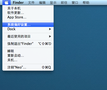 1、首先找到系统偏好设置,在桌面左上角点击苹果标志就可以找到系统偏好设置。