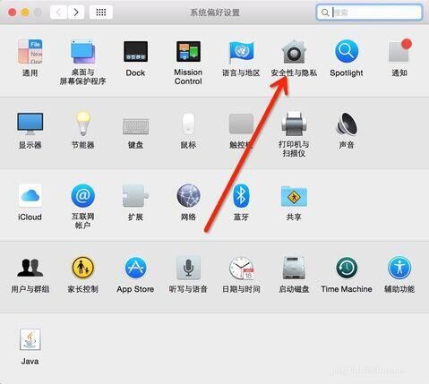 2、打开系统偏好设置,找到安全性与隐私:如下图。