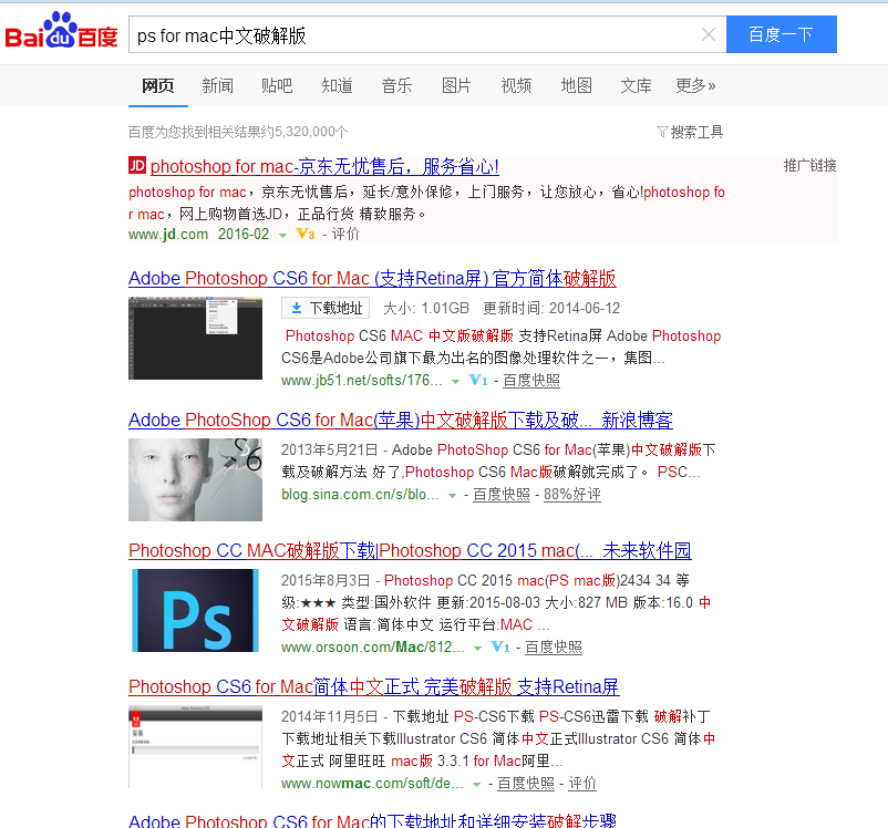 5、将安装来源更改为任何来源,之后我们就可以从网页和其他任意来源安装第三方软件及破解软件,例如我们常用的Photoshop软件,就可以直接打开Safari浏览器百度直接搜索 Photoshop MAC破解版,就可以找到很多版本的,根据需求下载需要的版本安装即可。