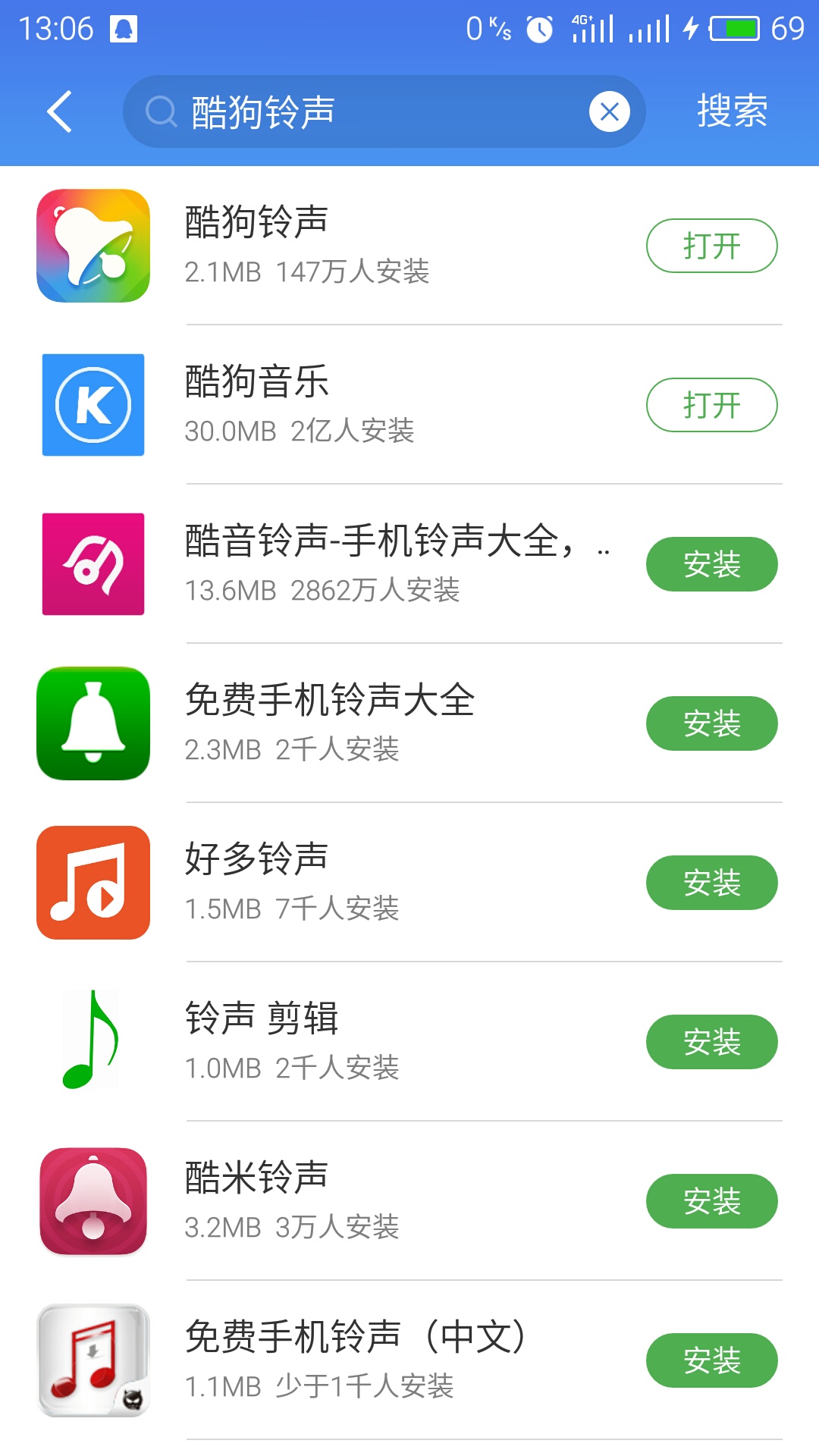 2、前往手机的“应用商店”下载“酷狗铃声”App;