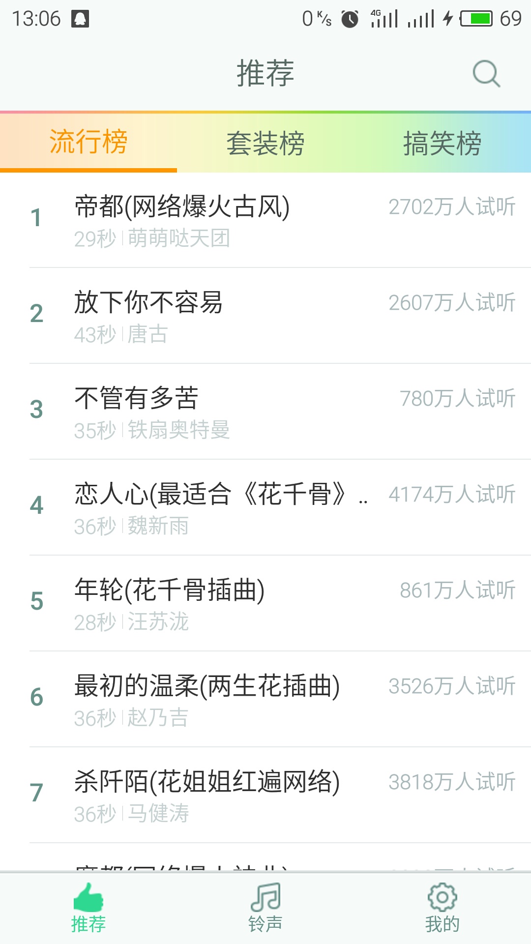 4、点击铃声列表可以试听下载在线铃声。
