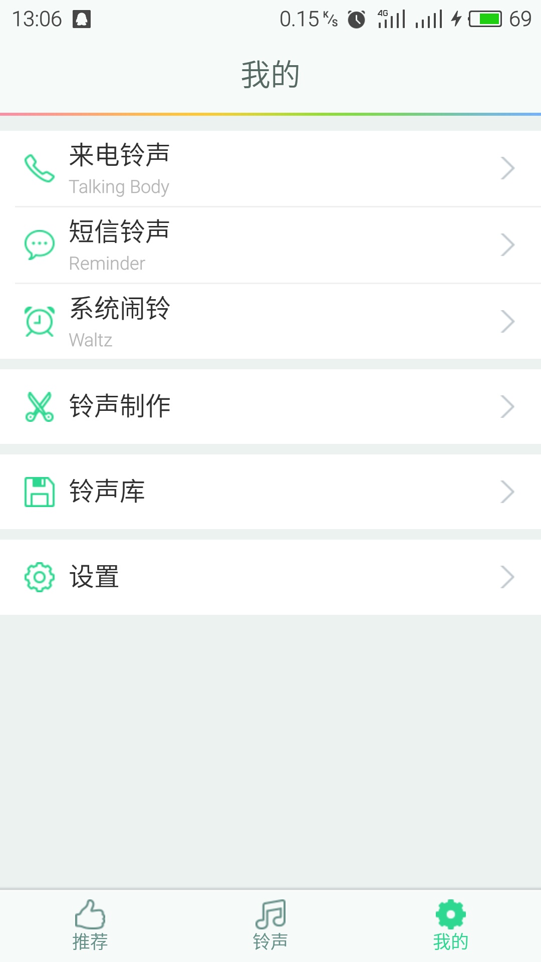 8、保存成功后可在“铃声库”找到已制作好的铃声,点击即可设置为来电、短信铃声。