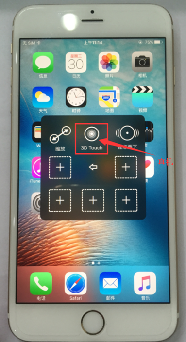 3. 通过设置打开虚拟按键,在通过虚拟按键中“自定”添加功能选项,查看有无3D-Touch功能选项,改版6s没有,如下图: