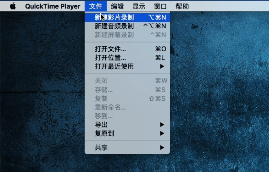 打开我们的QuickTime,点击,文件-新建影片录制,此时会打开我们的前置摄像头。