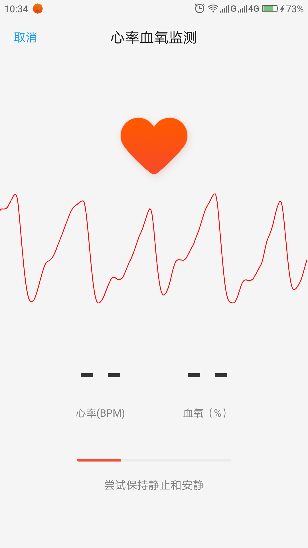 3、在监测过程中请安静、耐心的等待测试,等待提示监测完成后即可放开手指