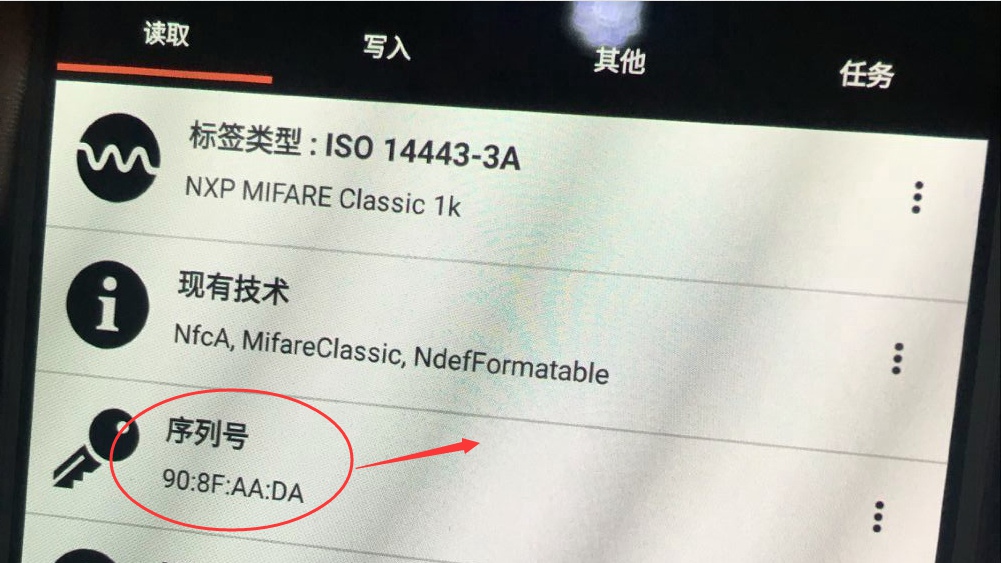 1.使用NFC taginfoInfo或者NFC Tool Pro读取原有IC门禁卡的ID信息,获取到ID后将ID复制或记住。