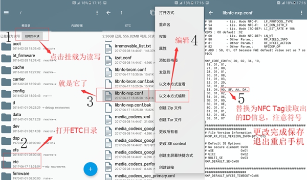 图示:使用RootExplorer手动修改NFC配置文件