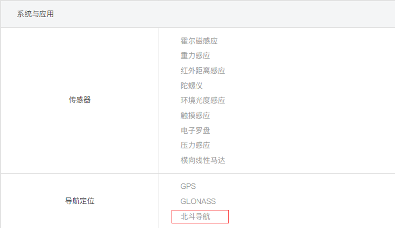 在手机厂家的品牌官网一般都会标明支持的导航系统,如下图所示。