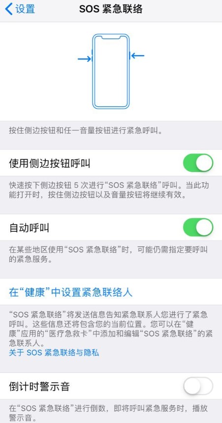 其实实苹果手机是支持自动呼救功能的,但是在中国地区,报警号码比较多样所以需要选择 110/120/119 的任意一个才能拨通。