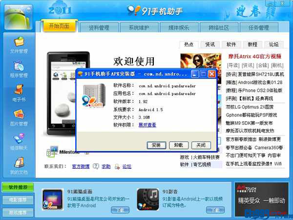 1、安装91手机助手:下载91手机助手(点击下载),下载完成后双击图标并根据提示进行安装。