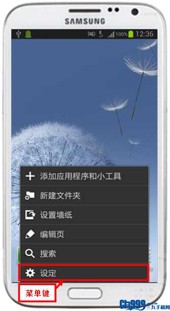 4.在待机页面下,点击左下方菜单键,选择“设定”。